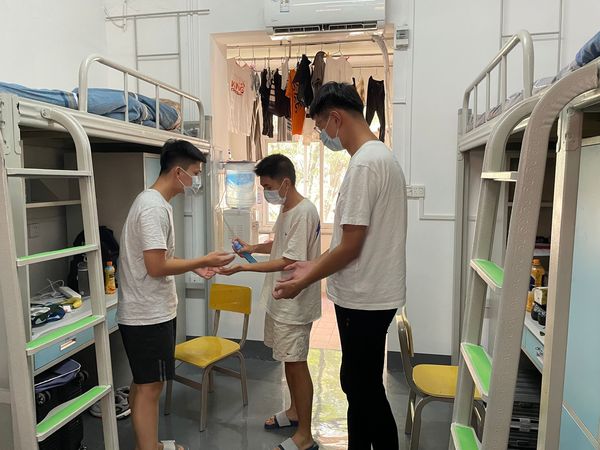 演练以宿舍为单位进行,56个宿舍、共316名学生参加。演练预设宿舍里学生出现发热疑似症状,模拟各部门联动开展疫情发现、核实、报告、隔离、转运、消毒等应急处置工作全过程。